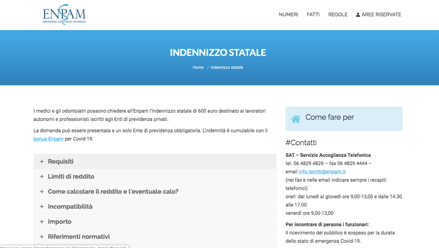 Enpam Indennizzo statale di 600 euro